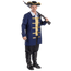 Join the revolution with this deluxe aristocratic colonial costume! Set includes a beautiful designed gold vest that has gold buttons and an attached shirt with a false back. The dickey (Shirt) has a loop fastener in the back by the neck and a tie closure at the bottom. The long navy jacket has gold buttons with gold trimming and the black pants features an elastic waistband for comfortable fit. Entire set is packaged in a durable zippered garment bag for convenient storage.