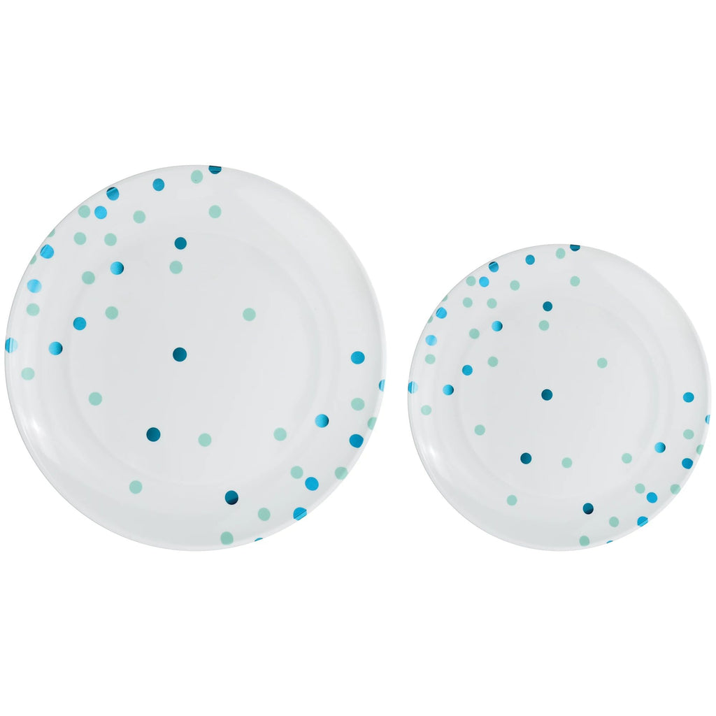 Round Plastic Reusable Dinner & Dessert Plates, Blue/ White, Polka Dot, 7.5-in & 10.5-in,20-pk | Case of 12