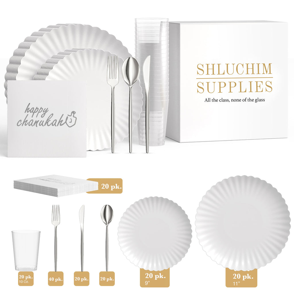 Service for 20 | Snow White Scalloped Chanukah Combo Set - Silver