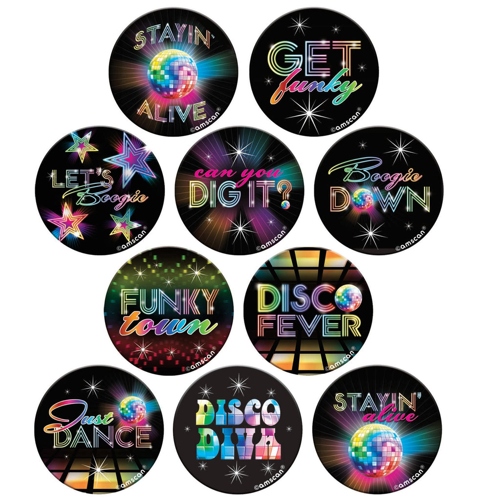 1970s Disco Fever Phrased Buttons, One Size, 10-ct - Pack of 2