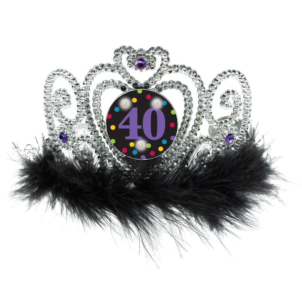 40 Light-Up Fur Trim Crown Tiara, Silver/Black, One Size - Pack of 6