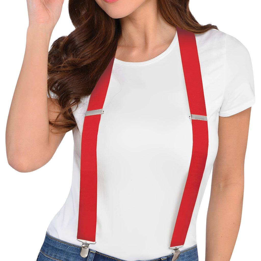 Bold Red Y-Back Suspenders - Adjustable Costume Accessory