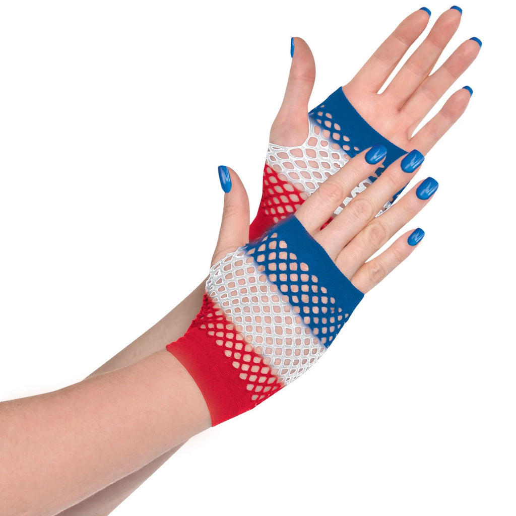 Red, White & Blue Fishnet Fingerless Gloves, 2-pcs - Pack of 2