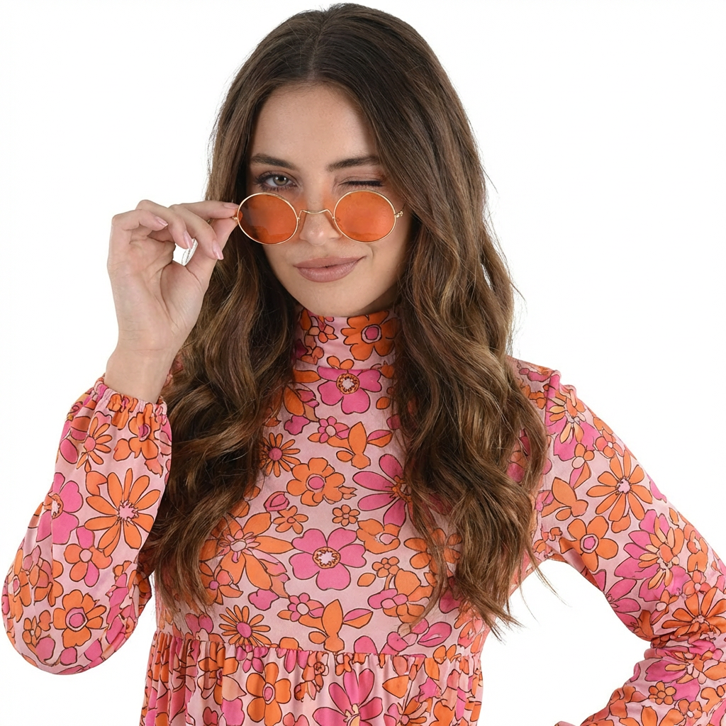 Retro Hippie Circle Sunglasses - Pink/Gold Costume Accessory - Pack of 12