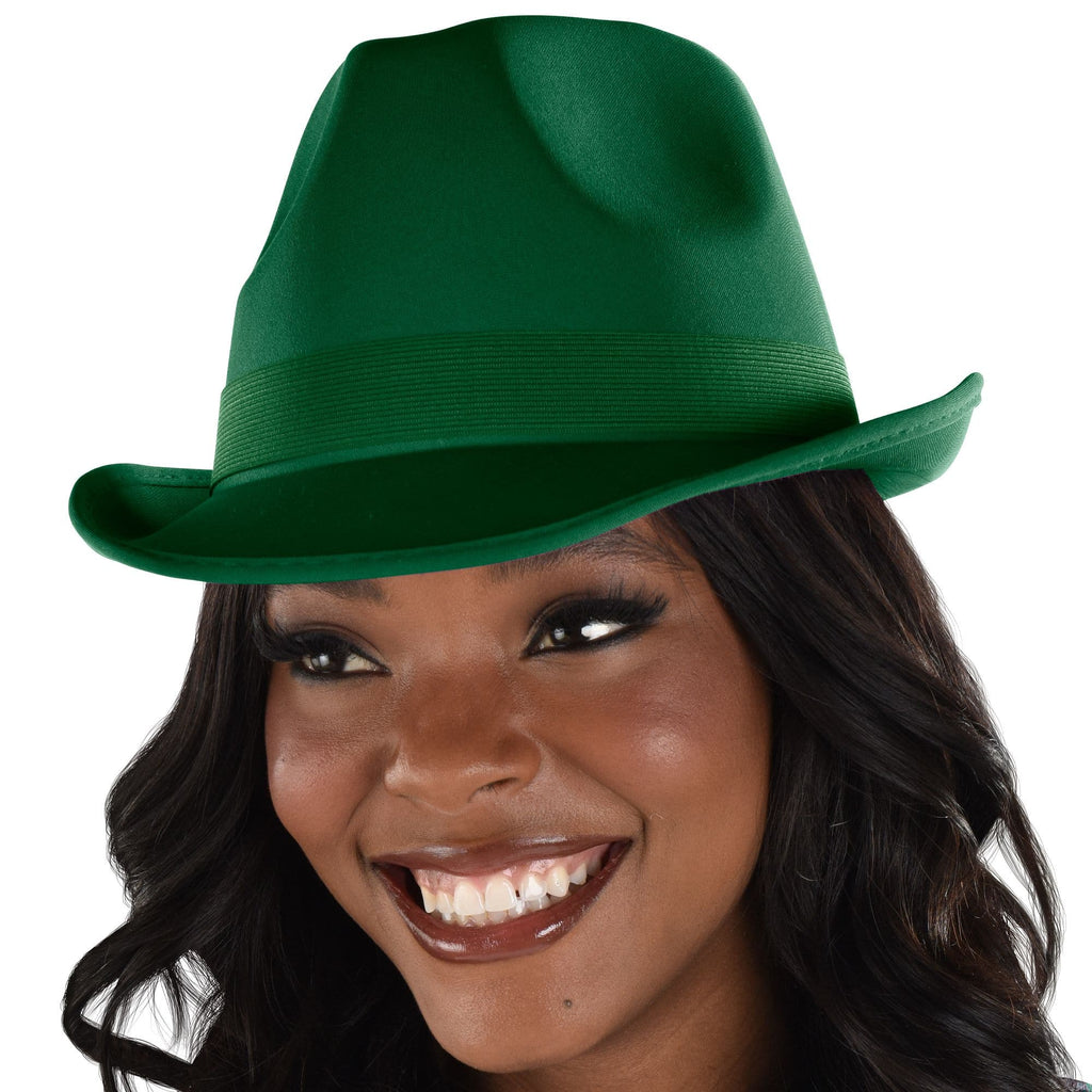 Festive Green Roaring 20s Fabric Fedora Hat, One Size
