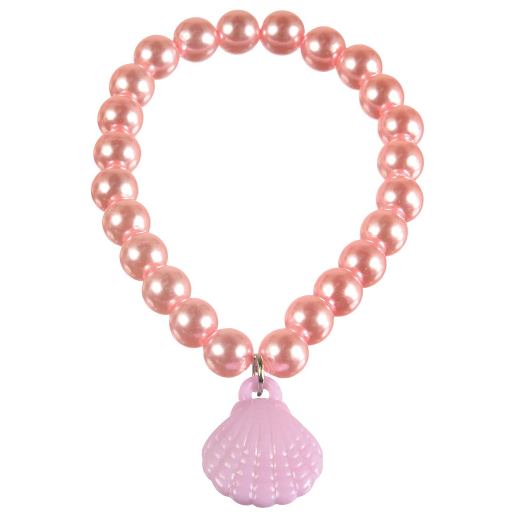 Shimmering Mermaid Pearl Beaded Bracelet with Seashell Pendant, Pink, One Size, 4-pk