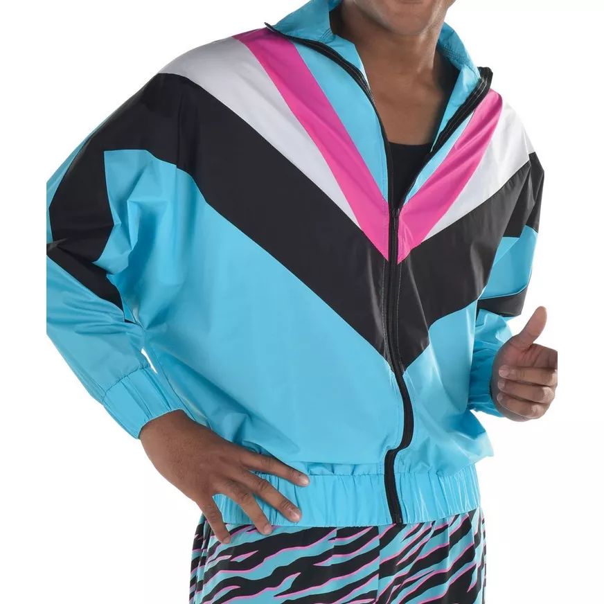 90s Windbreaker Jacket, Blue/Pink/White, Adult One Size