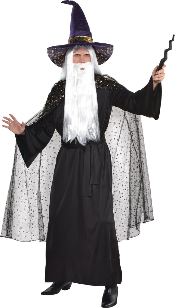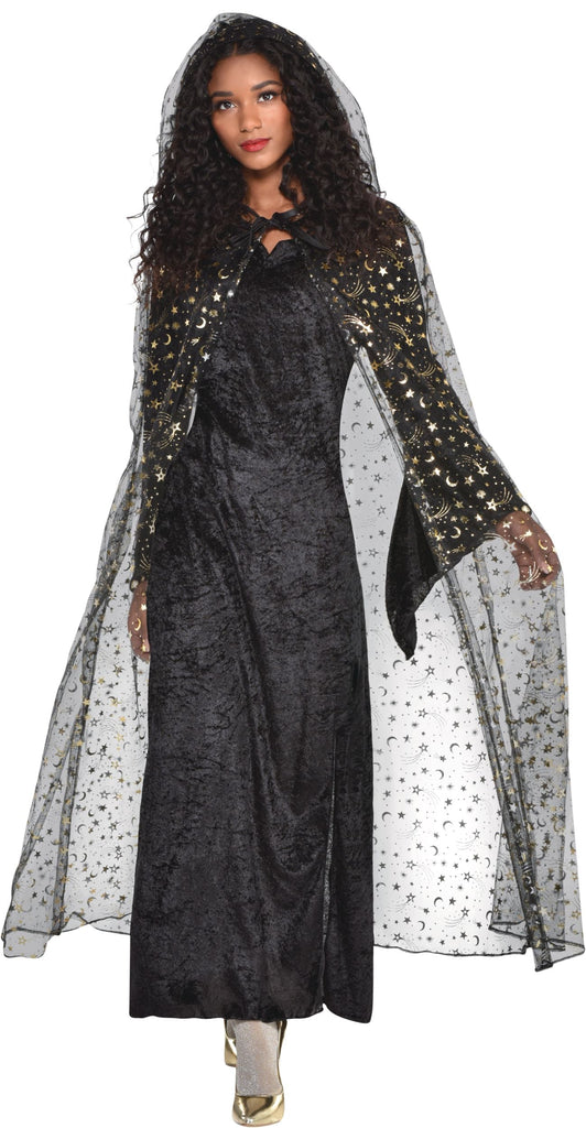 Adult Celestial Hooded Sheer Cape, Black Stars & Moons, One Size