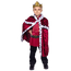 A ROYAL ENTRANCE! The regal king costume is exquisitely designed for your little one. The set comes in a matching girls' version. It is perfect for family fun costume themes and so much more! The burgundy top comes with a mandarin collar. Gold buttons with attached chains go across the top and close in the back with a hook and loop closure. The burgundy crushed velvet cape is trimmed with a black and white spotted print. The copper-gold crown is sturdy and features an elastic for an adjustable fit.