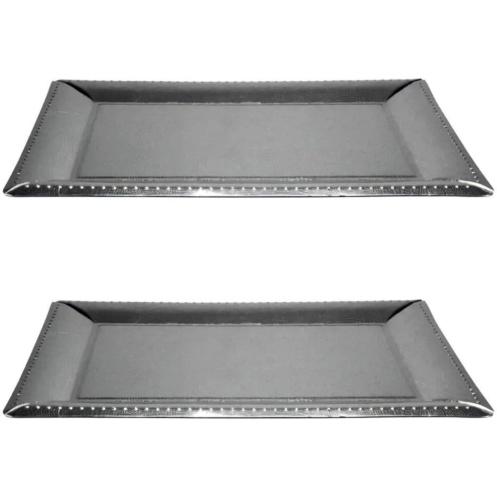 Silver Plastic Serving Trays - Set of 2, 16-Inch - Case of 36