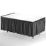 "Our table skirts measures 14' long and hang down 29"". Our table skirts are made of high quality plastic and come with self adhesive tape so that you just have to peel the backing on the tape and adhere the skirt to your table . With the ruffled look, your tables will look beautiful and elegant."