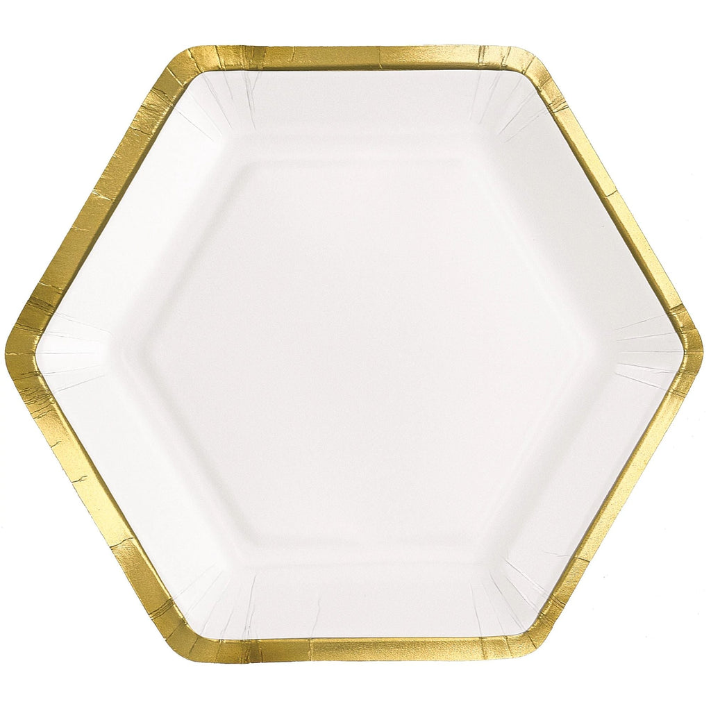 Elegant White Hexagon 9-inch Metallic Paper Plates, 8-ct - Case of 48