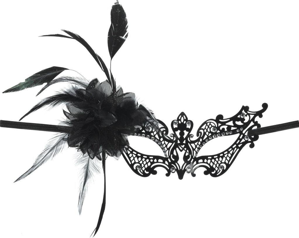 Feather Filigree Flower Masquerade Mask, Black, One Size