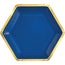 Elevate your event with our stunning Royal Blue Hexagon Metallic Paper Plates. Featuring a vibrant blue finish accented by a striking metallic gold border, these 9-inch plates add a touch of elegance to any occasion. Perfect for parties, gatherings, and everyday use, they combine style with convenience, making clean-up a breeze. Ideal for those who appreciate a unique and sophisticated table setting.