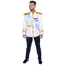 Hey men get your jacket costume. Jacket features gold button down closure and gold epaulets. Cover whatever you are wearing and you will be dressed for the party. Jacket chest size measures 40'' and jacket length is 29''. Sky blue sash has a velcro closure.